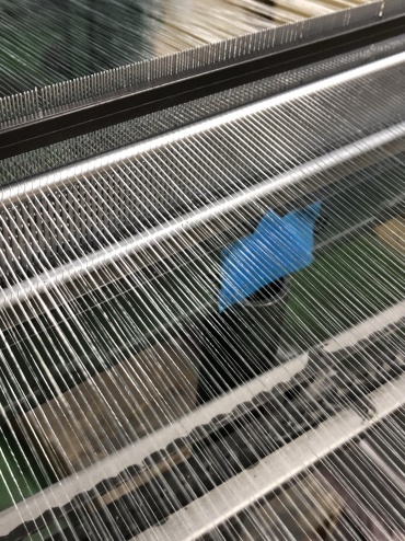 また右の写真のようなガイドというくし状の部分に糸を手で一本一本通す作業も行いました。