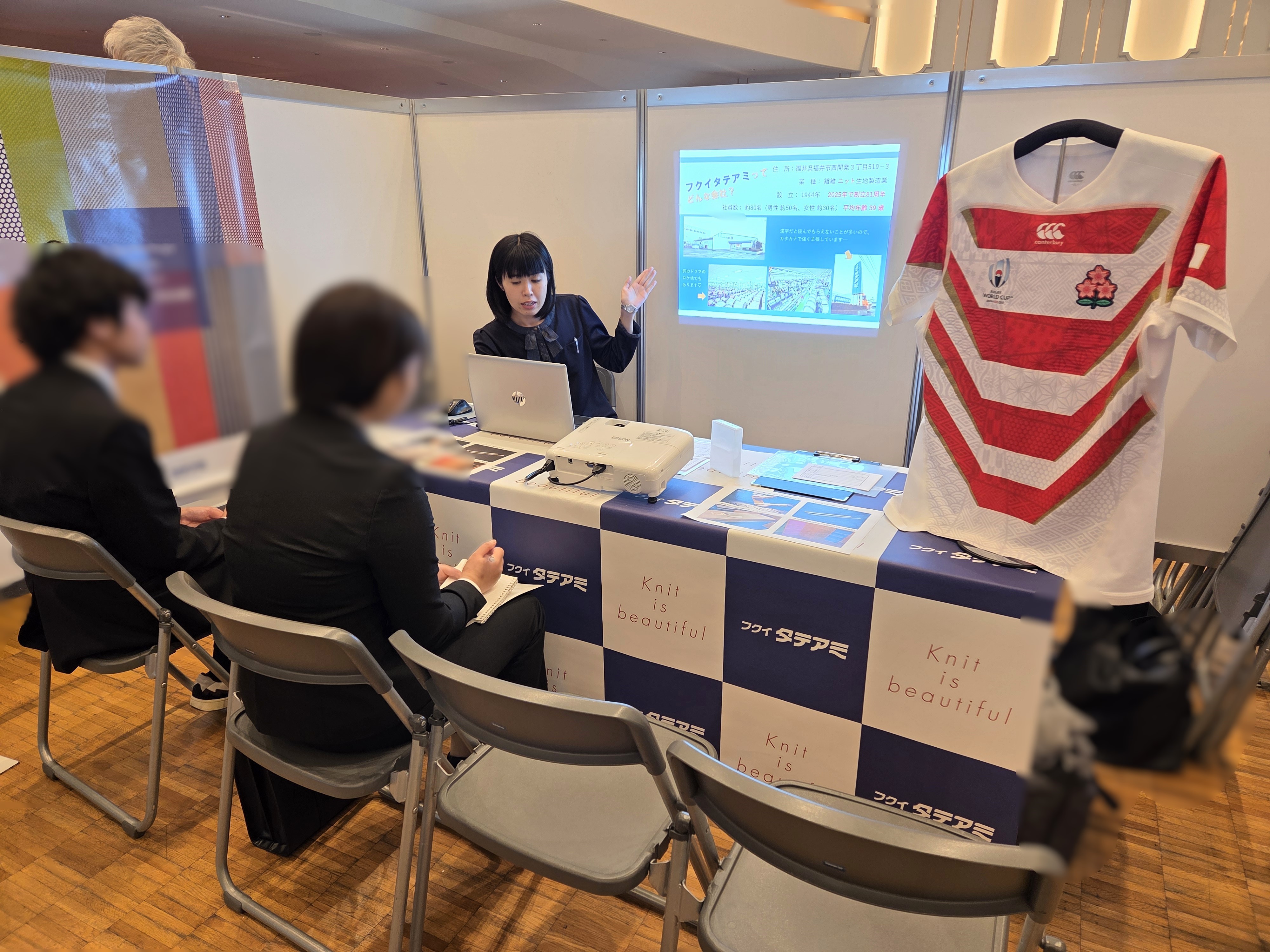 学生の皆さまは数日間にわたる日程の中で、多くのブースを訪問されている様子で、フクイタテアミのブースでも熱心にお話を聞いてくださり、ありがとうございました。たくさんの質問もいただき、私たちも大変有意義な時間となりました。